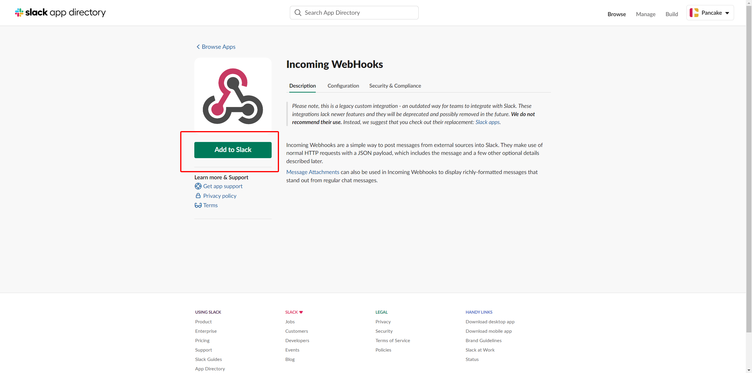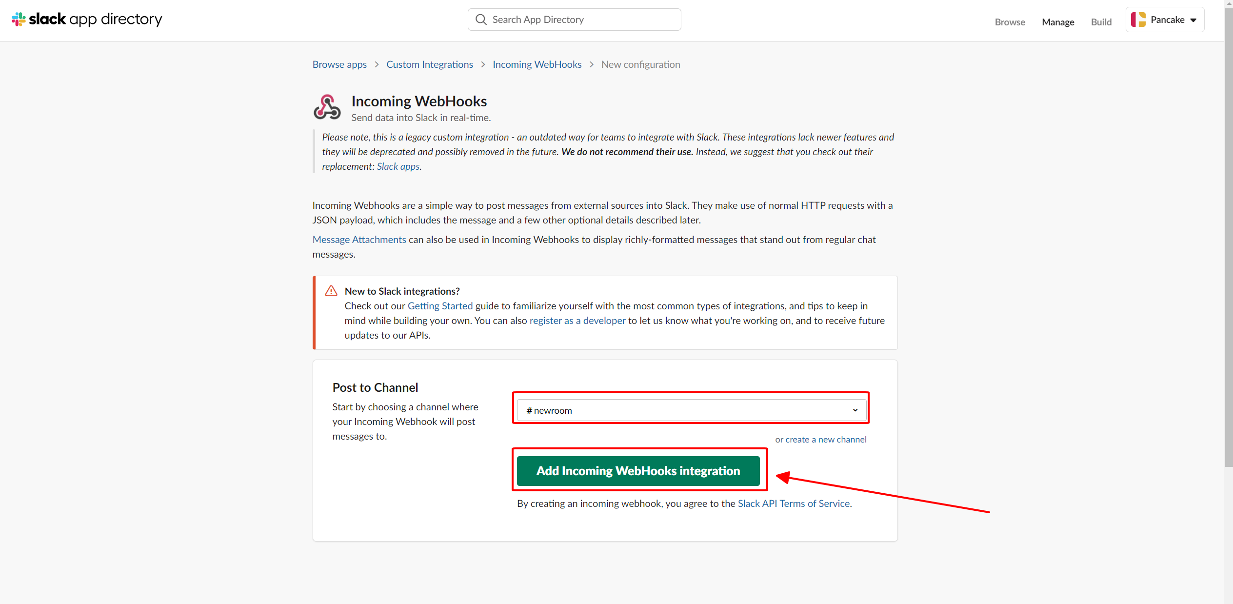 Tiếp theo, bạn hãy chọn channel mà bạn muốn gửi thông báo từ POS và ấn **Add Incoming WebHooks.**