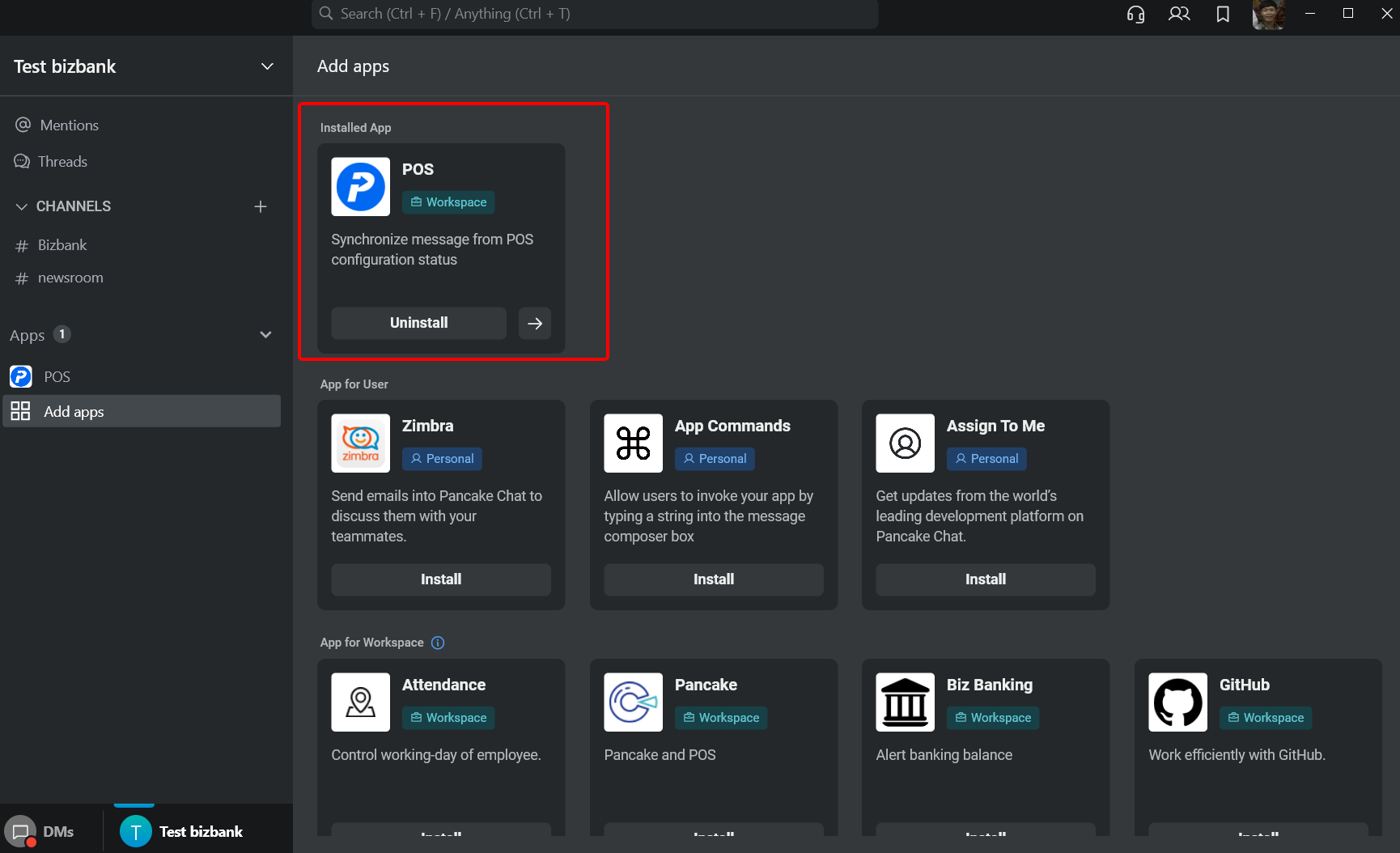 **Bước 1:** Cài đặt ứng dụng POS trong Pancakework